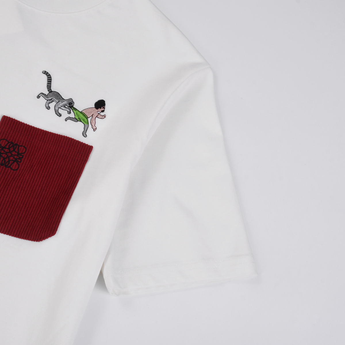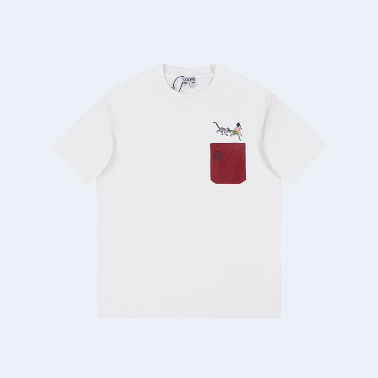 로에베 QQ 레드 포켓 티셔츠 화이트